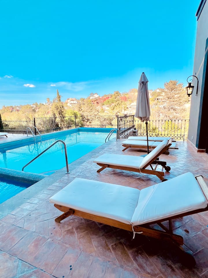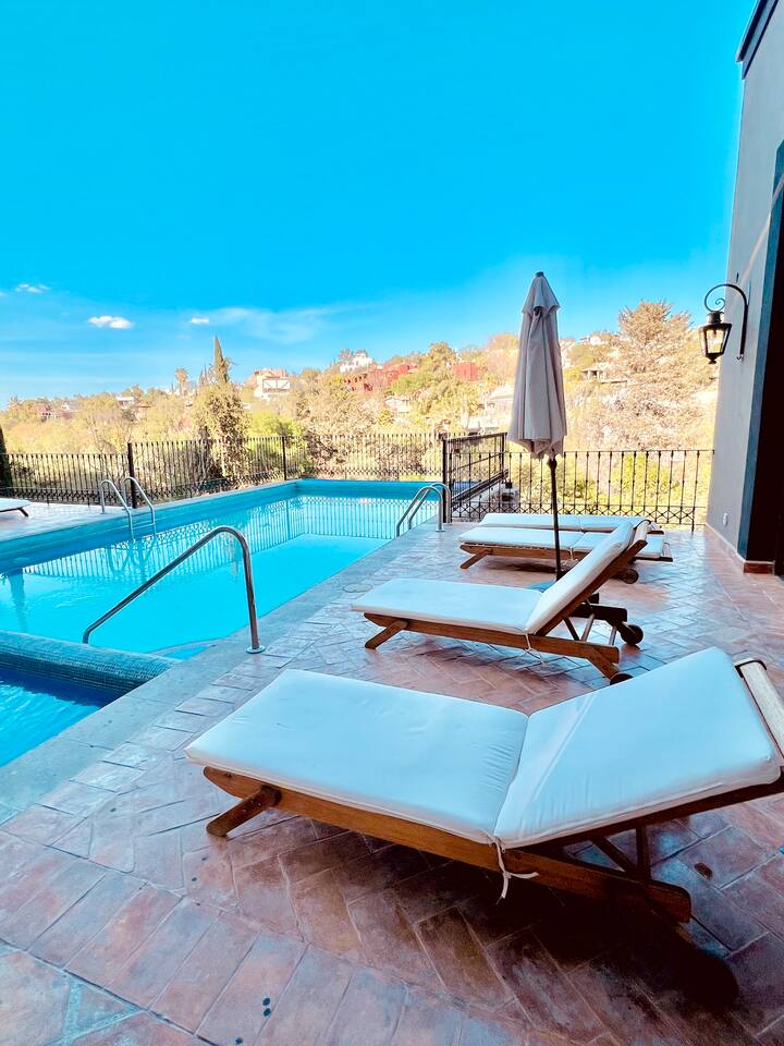 Capilla de Piedra | The Ultimate San Miguel Experience Exclusivity, Luxury, and Iconic Views Capilla de Piedra is, without a doubt, the most coveted and exclusive residential development in San Miguel de Allende. Designed as a "village within a village," it masterfully combines classic colonial architecture with world-class resort luxury, all within an atmosphere of absolute security and distinction. The "Balcony" of the City: Our privileged hilltop location allows us to offer the most iconic and photographed views of the San Miguel Arcángel Parroquia and the majestic domes of the historic center. Security & Peace: Enjoy the tranquility provided by a 24/7 gated community with controlled access. Stay close to the vibrant pulse of San Miguel while remaining tucked away from the nighttime bustle. 🏛️ World-Class Amenities: The Clubhouse As distinguished guests of our residence, you will have exclusive access to the Capilla de Piedra Clubhouse, a sophisticated space designed to revitalize body and mind in an environment of absolute privacy. Heated Swimming Pool: Enjoy a relaxing dip in our spectacular temperature-controlled pool, perfect for any season in San Miguel’s beautiful climate. Hydro-massage Jacuzzi: The perfect spot to disconnect and unwind under the Guanajuato sky. Cutting-Edge Gym: Maintain your wellness routine in a fully equipped fitness center featuring state-of-the-art machines and free weights, overlooking the development's lush gardens. Wellness Area (Steam & Sauna): A sanctuary for rejuvenation. We offer professional-grade steam and sauna facilities for a complete spa experience without leaving the complex. Lounge & Social Areas: Elegantly decorated spaces featuring fireplaces and designer furniture—ideal for reading a book, enjoying a conversation, or simply admiring the colonial architecture surrounding the club. Padel Court: For sports enthusiasts, the complex features premium facilities to enjoy a match in a secure and exclusive setting. 🤵🏼 Concierge Note: Access to the Clubhouse is fully included in your stay. We recommend checking with us for current operating hours and the availability of additional bespoke services, such as on-site massages or beauty treatments, directly at the spa area.