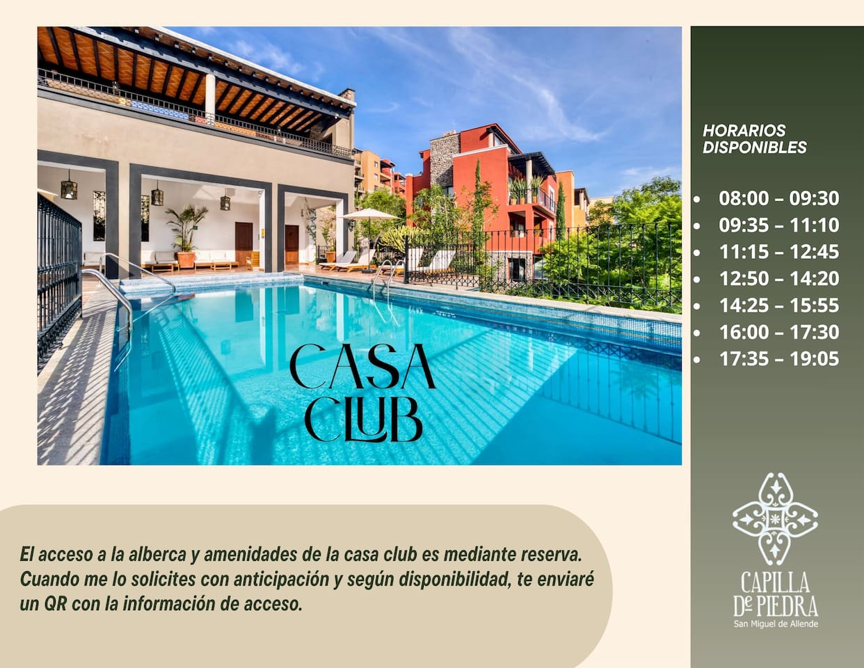 ⛳️ Amenidades de la Casa Club – “Capilla de Piedra” 🌟 Como cortesía para nuestros huéspedes, ofrecemos acceso gratuito a las áreas comunes del complejo (controladas 100% por la administración del residencial), que incluyen: • 🏊 Alberca • 🛁 Jacuzzi • 🌬 Vapor • 💆 Spa • 💪 Gimnasio 🛎️ Horarios disponibles (por reserva) • 08:00 – 09:30 • 09:35 – 11:10 • 11:15 – 12:45 • 12:50 – 14:20 • 14:25 – 15:55 • 16:00 – 17:30 • 17:35 – 19:05 📲 Para su uso, es indispensable solicitar con anticipación el acceso para recibir un código QR con la información de tu reserva. ⚠️ Información importante ⚠️ • El alojamiento no cuenta con alberca privada; todas las instalaciones son de la Casa Club. • No garantizamos disponibilidad ni acceso a todas las amenidades durante toda la estancia. • En caso de que alguna amenidad no esté disponible, no se realizarán descuentos ni cancelaciones, ya que son instalaciones externas a la propiedad y sujetas a decisiones administrativas ajenas. 🙏 Agradecemos tu comprensión — nuestro objetivo siempre será que disfrutes al máximo las amenidades disponibles durante tu visita. 🌿